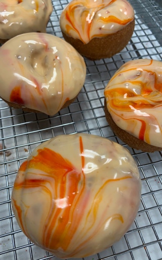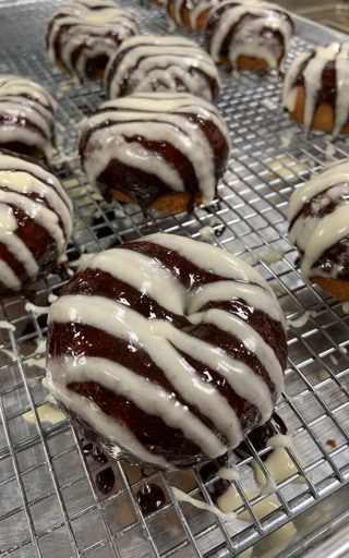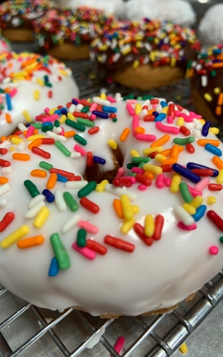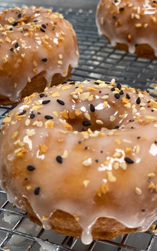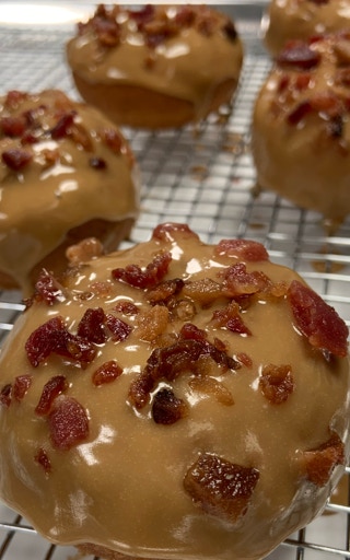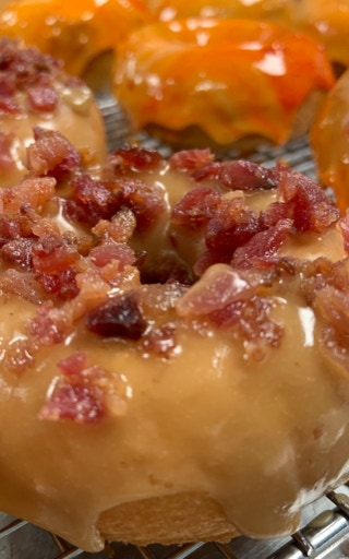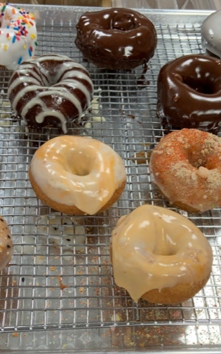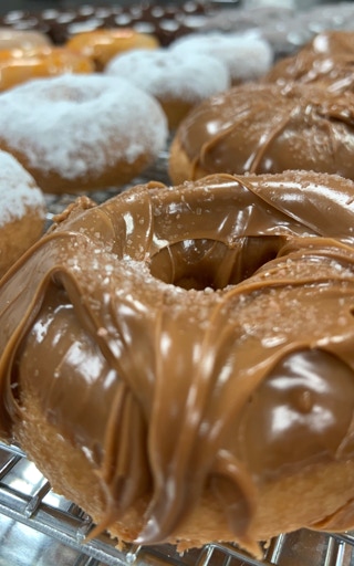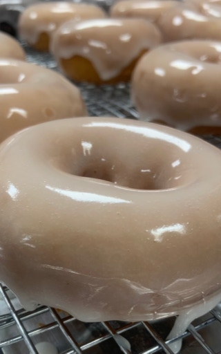 We do not use nuts in any of our donuts or glazes, however the facility that we get our ingredients from will not guarantee that they are nut free, so there could be cross contamination.