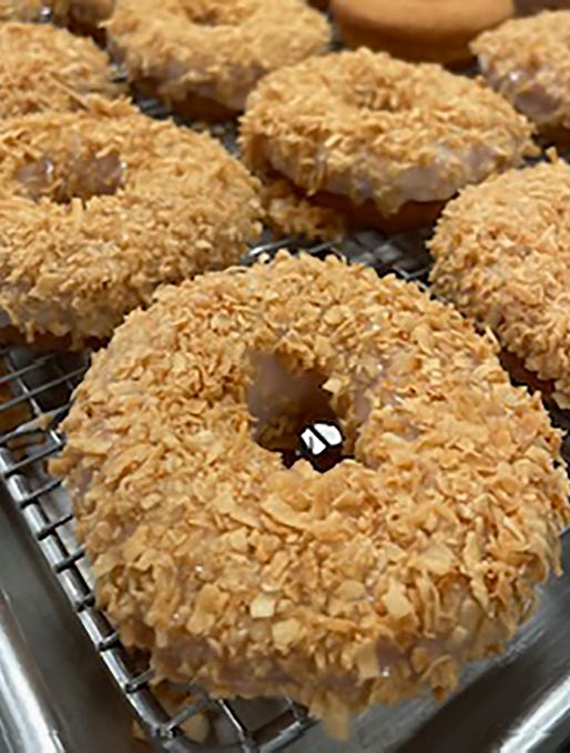 We do not use nuts in any of our donuts or glazes, however the facility that we get our ingredients from will not guarantee that they are nut free, so there could be cross contamination.